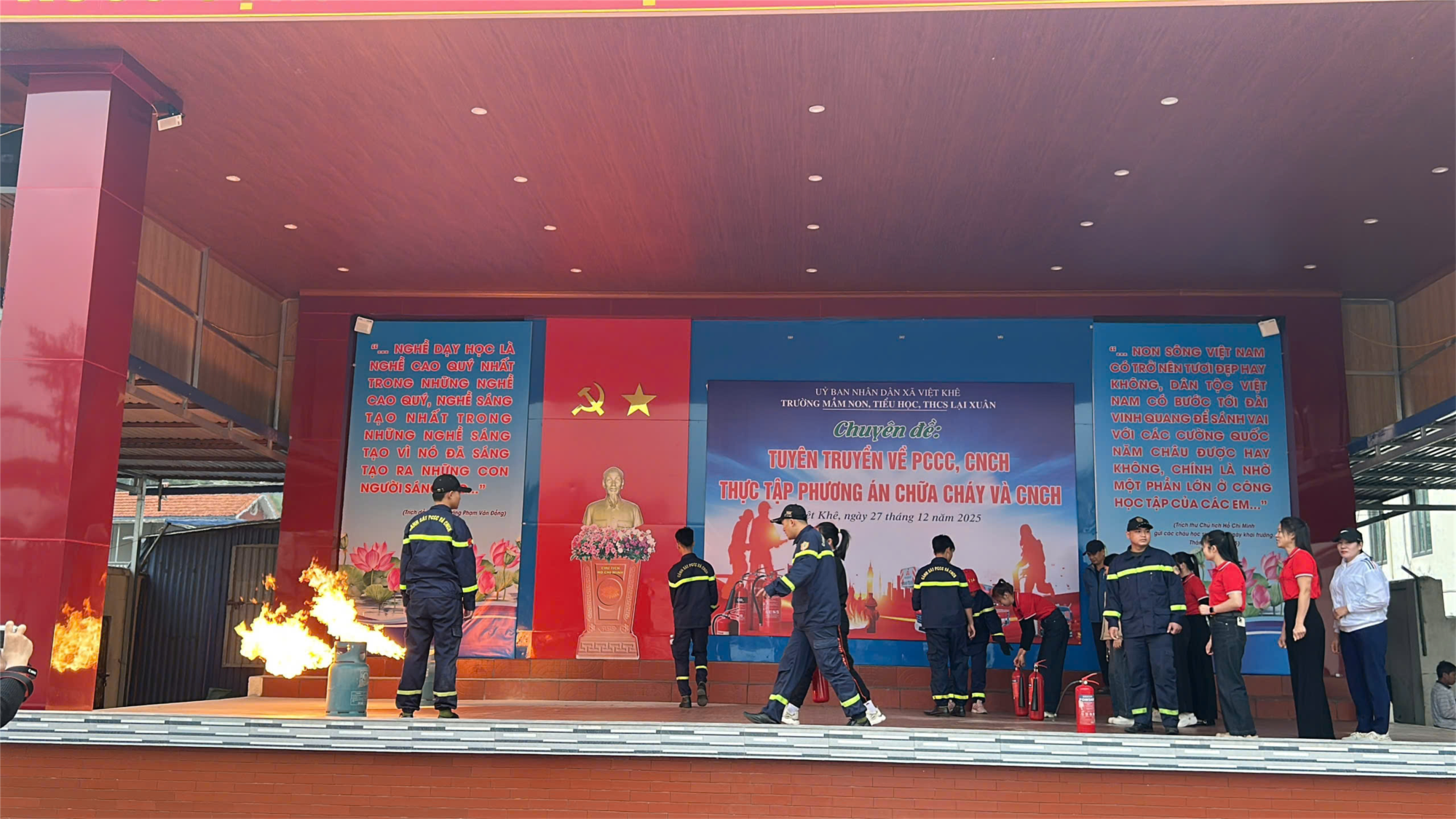 Nhằm thực hiện tốt công tác phòng cháy, chữa cháy trong trường học và nâng cao nhận thức, vai trò, trách nhiệm về công tác Phòng cháy chữa cháy cho mỗi cán bộ, giáo viên, nhân viên và học sinh của nhà trường, ngày 27/12/2025, Đội PCCC khu vực 5 tổ chức tập huấn nghiệp vụ phòng cháy chữa cháy năm 2025.
