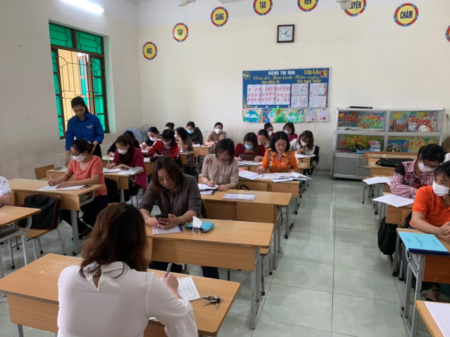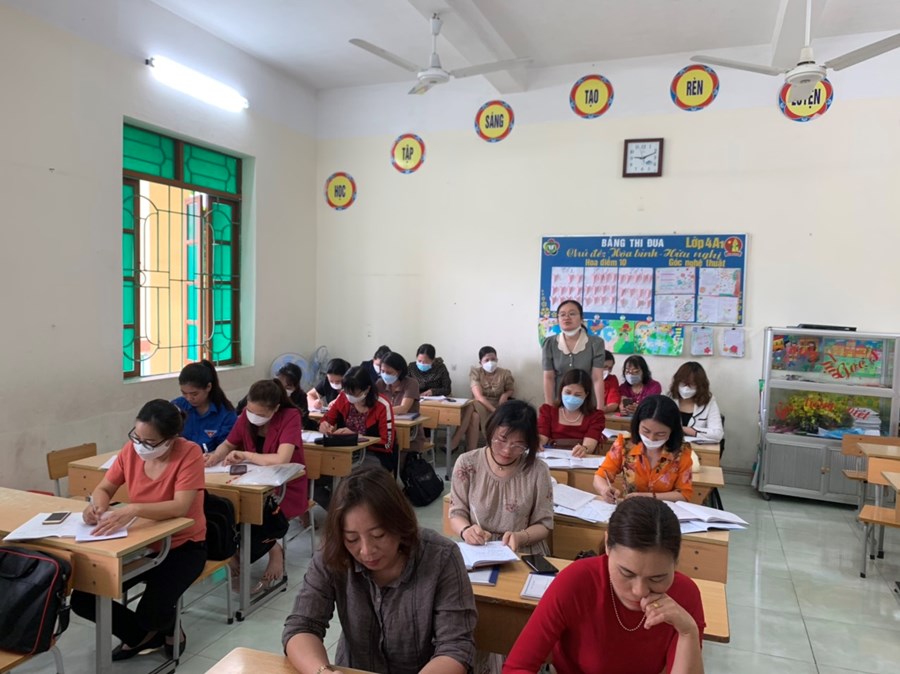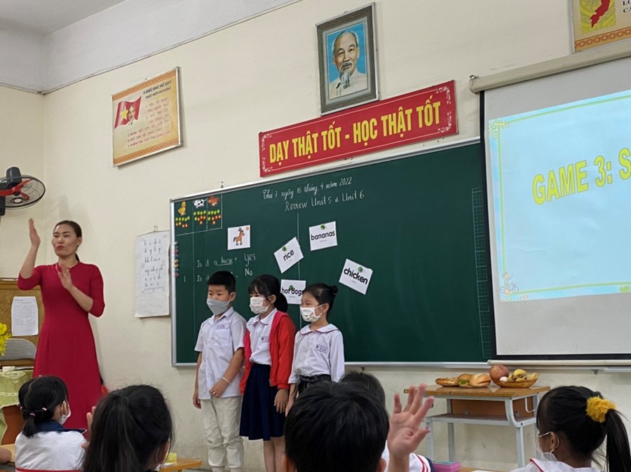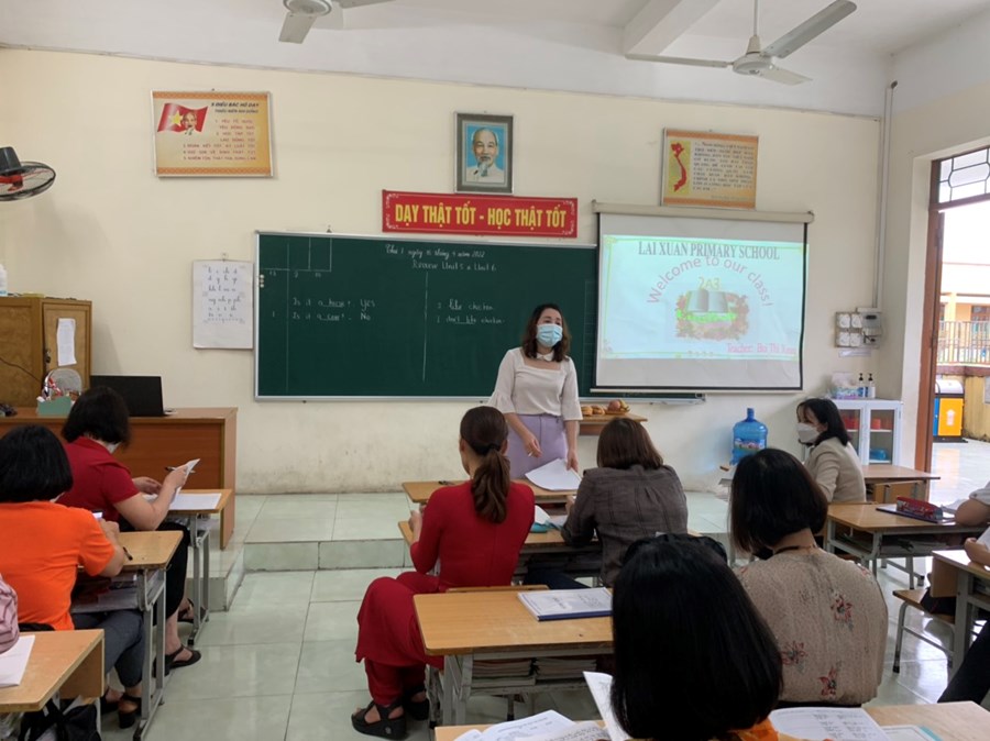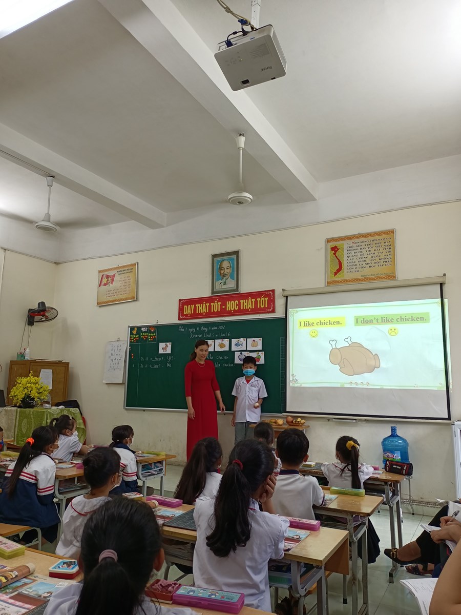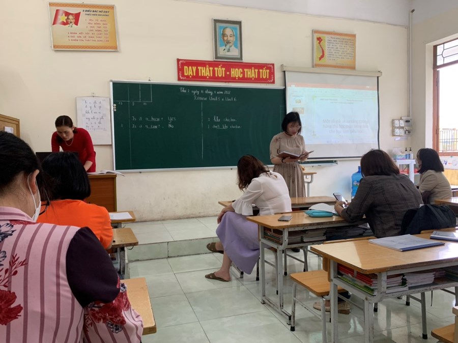 Theo kế hoạch chuyên môn năm học 2021-2022, tháng lên lớp chuyên đề: Một số giải pháp tăng cường học môn tiếng Anh cho học sinh lớp 2. Để thực hiện lên lớp chuyên đề đồng chí Bùi Thị Xuân- Giáo viên tiếng Anh đã lựa chọn lớp 2A3 với bài Revien Unit 5& Unit 6. Trong tiết học đồng chí chuẩn bị chu đáo cả Ứng dụng công nghệ thông tin, vật thật và sử dụng linh hoạt các phương pháp dạy học tạo nên một tiết học sôi nổi đầy hào hứng với học sinh. Sau giờ học các đồng chí trong buổi sinh hoạt đã thảo luận và rút ra được bài học cho bản thân. Cuối buổi sinh hoạt đồng chí Nguyễn Thị Ngọc Hạnh – Phó hiệu trưởng nhà trường đã thống nhất vận dụng chuyên đề vào tất cả các môn học như cần tạo hứng thú cho học sinh ngay từ hoạt động khởi động hay lựa chọn các hình thức, phương pháp dạy học linh hoạt nhằm khêu gợi trí tò mò sự ham hiểu biết của học sinh.